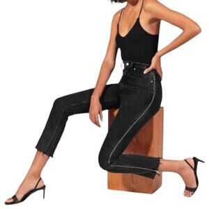 Abercrombie Black Ultra High Rise Side Zipper Mom Jeans