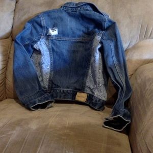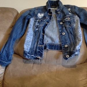 Abercrombie blue jean jacket for girls size small (10). Rips in jacket were bought that way. Good shape, barely worn.
