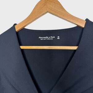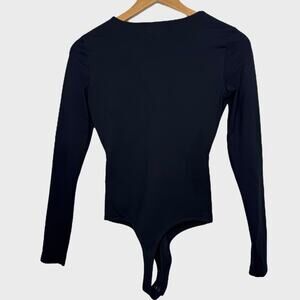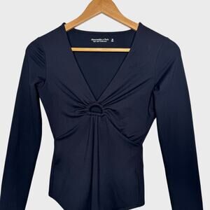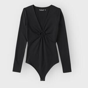 Abercrombie Bodysuit XS Black Soft Keyhole Long Sleeve O-Ring V-Neck Minimalist