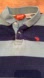 Abercrombie boy’s XL polo. Shirt features 100% cotton pique knit material; 2 tone blue wide striped pattern; short sleeves with banded cuffs; two button collar front; and orange embroidered moose on left chest. Light stain on right side front; and small mendable tear on left cuff (see pics). Good used condition from a smoke free home. Refer to pictures for measurements.