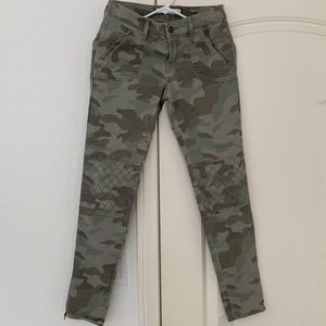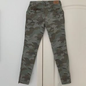 Camouflage skinny jeans from Abercrombie. Ankle-length, patchwork moto detailing on knee, zip at side of leg opening. Excellent condition, but they no longer fit me, so selling. Size 2, W26.