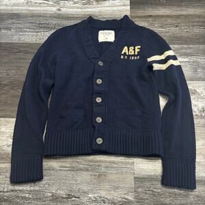 Abercrombie Cardigan Blue Womens M Wool Blend Knit Retro Varsity Sweater Y2K