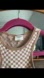 Stylish checkered knit tank top in brown and cream.