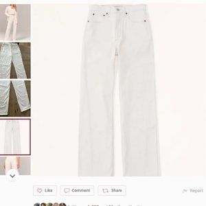 90s Relaxed Jean The famous Abercrombie and Fitch Curve Love Jeans🔥 the style is 90s relaxed high rise in size 33. color Cream, Curve Love (extra room in the hips compared to regular style). Regular inseam style so recommended for anyone 5’3”-5’8”. Color is a perfect cream white, super flattering and definitely that extra cool vibe with the hemming at the front of the leg.
