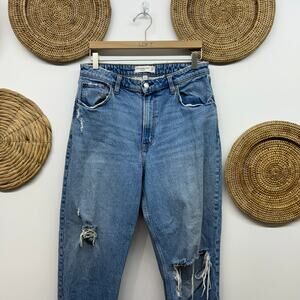Step back in time with these Abercrombie Curve Love 90s Mom Jeans. Featuring a flattering high-rise waist and a stylish distressed design, these jeans offer a vintage-inspired look with a modern twist. The classic mom jean silhouette provides a comfortable and relaxed fit, perfect for everyday wear. Size 31/12.