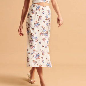 Abercrombie Dipped Waist Midi Floral Skirt XL Petite - NEW