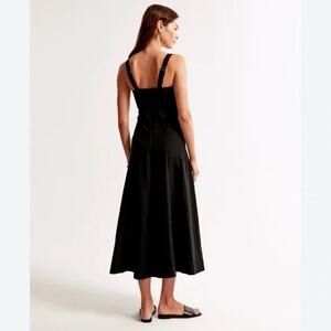 Abercrombie Emerson Poplin Linen Midi Dress Black XS Cottagecore Fall Coquette