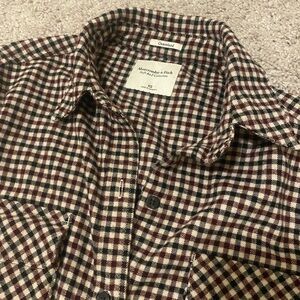 Abercrombie Fall Plaid Flannel Oversized Shirt Jacket Burgundy Shacket