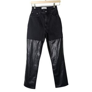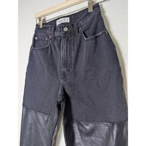 Abercrombie Faux Leather Denim Black Curve Love 90s Straight Jeans Women 25