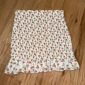 Abercrombie & Fitch 100% Cotton Smocked Mini Skirt White Peach Fruit Print Large