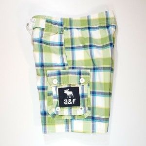 Abercrombie Fitch 28in Mens Size Small Plaid Board Shorts Swim Trunks Cargo Green Blue Beachwear