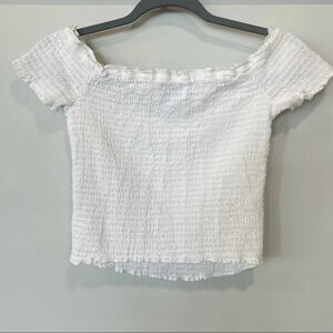 Abercrombie & Fitch White Shirred Crop Top Size Medium. Preowned. Excellent condition!