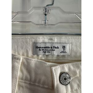 Abercrombie & Fitch 90s Relaxed High Rise White Denim Jeans with Beige Floral Embroidery