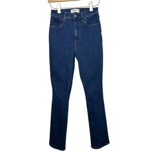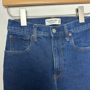 Abercrombie & Fitch 90s Slim Straight Ultra High Rise Dark Wash 26. High rise fit with a slim straight leg. Dark wash. Item does have a little bit of stretch.