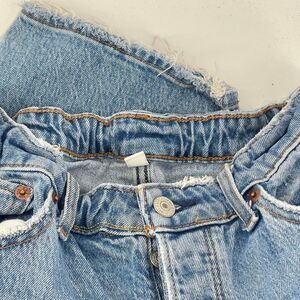 These jeans were professionally cleaned, and an elastic band was added to the waistband for a more comfortable and flexible fit. The original size tag was removed, but based on measurements, they best fit a size 28.