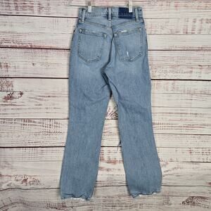 Abercrombie & Fitch 90's Straight High Rise Jeans Sz 24 Busted Knee Grunge Denim