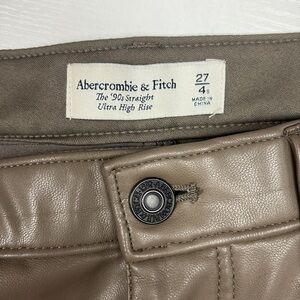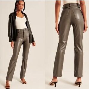 Abercrombie & Fitch '90s Straight Ultra High Rise Faux Leather Pant Olive Brown