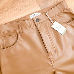 Abercrombie & Fitch 90’s Straight Ultra High Rise Tan Vegan Leather Pants 28 6S