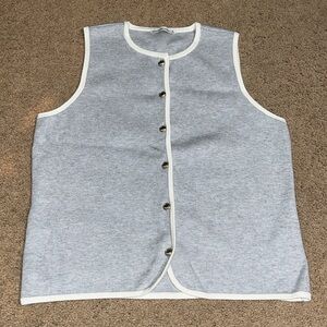 Abercrombie & Fitch A&F Mara Crew LuxeLoft Sweater Vest Gray XL. Slim-fitting sweater vest in our soft sweater-knit fabric, with a crew neckline, button-through detail and rib trim details along the edges. Body-skimming fit is structured yet stretchy, customer-favorite LuxeLoft sweater yarn fabric, featuring a high crew neckline, contrasting trim, and gold button-detail. Pairs perfect with your favorite jeans or a mini skirt! Imported. 52% Viscose, 28% Polyester, 20% Nylon. Approx measurements: 20.5“ pit to pit & 24“ length. Great pre-owned condition. No stains/flaws. Smoke/pet free home. Offers welcome. Bundle & save. Ship same/next day. Packaged w/ care.