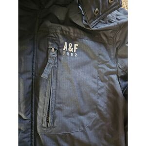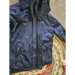Abercrombie & Fitch AF Mens Navy Blue Winter Hooded Jacket Logo Full Zip Medium