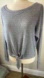 Abercrombie & Fitch A & F Tie Front Knit Thermal Top Ribbed Steely Gray Boxy Long Dolman Sleeves Wide Neck Slightly Fuzzy Texture
