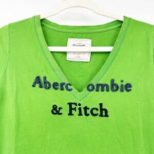 Abercrombie & Fitch A&F Womens Y2K Preppy Cotton V-Neck Short Sleeve Tee in Green. Size Large.