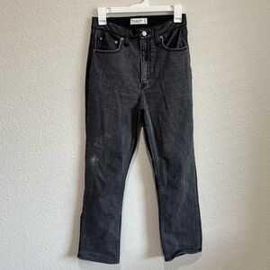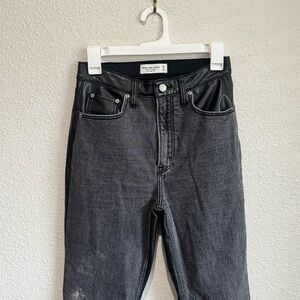 Abercrombie & Fitch Ankle Straight Ultra High Rise Two Toned Faux Leather Jeans Denim Black grey Streetwear