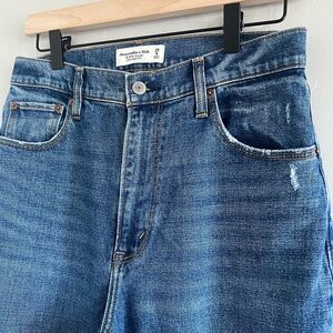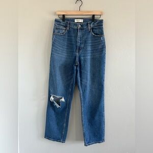 Abercrombie & Fitch Ankle Straight denim jeans in a medium wash. Excellent condition. Distressing detail.