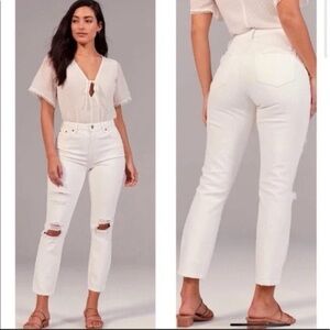 Abercrombie & Fitch Ankle Straight Ultra High Rise White Jeans, Sz 28/6