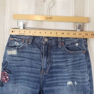 Abercrombie & Fitch Annie High Rise Girlfriend Jeans Blue Embroidered Size 26/2r