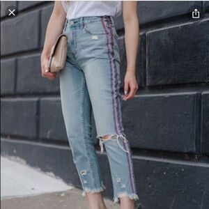 Abercrombie & Fitch Annie High Rise Girlfriend Jeans With Red Stripe Size 28 / 6