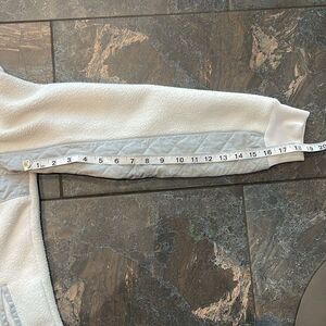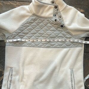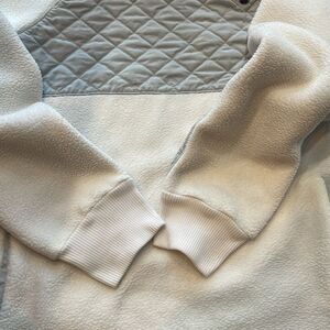 Abercrombie & Fitch Asymmetrical Snap Fleece Sweatshirt Gray & White color, features quilted patterns and two side front pockets Size S
