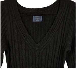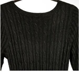Introducing a stunning black sweater dress from Abercrombie & Fitch, a must-have for any fashion-forward woman's wardrobe. Featuring a classic cable knit pattern, long sleeves, and a flattering V-neckline, this dress is perfect for the fall and winter seasons. The dress is size small and made of an acrylic blend knit fabric that is both comfortable and stylish.