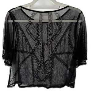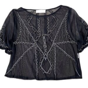 Abercrombie & Fitch Sheer Mesh Beaded and Embroidery Short Sleeve Top