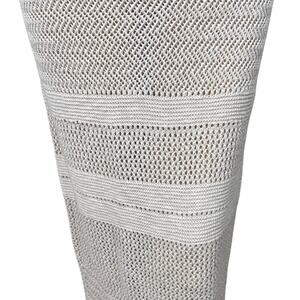 This skirt by Abercrombie & Fitch is so gorgeous! It is a pull on style with elastic around the waist. It is a sheer open weave/crochet style with solid stripe details. Can be worn as a cover up or with a slip underneath. Fabric is a cotton blend in a beige/warm gray color. Skirt is in excellent condition, no notable flaws!