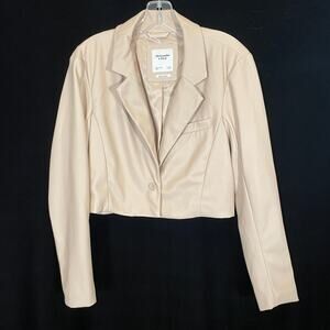 Abercrombie & Fitch Beige Vegan Leather Cropped Blazer Jacket Preppy Neutral S