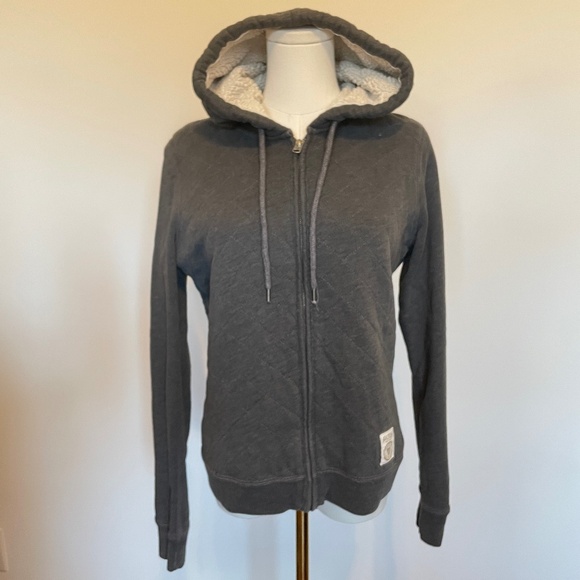 Abercrombie Fitch Bella Sherpa Lined Zip Hoodie Womens M Gray Quilted Y2K Preppy