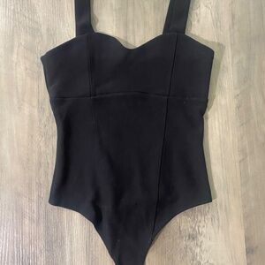 Elegant black bodysuit with wide straps and sweetheart neckline. Only selling because it’s the wrong size for me!
