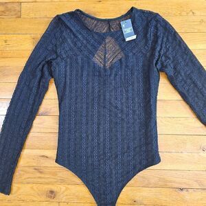 Abercrombie & Fitch Black Bodysuit Long Sleeve Mesh Medium