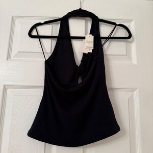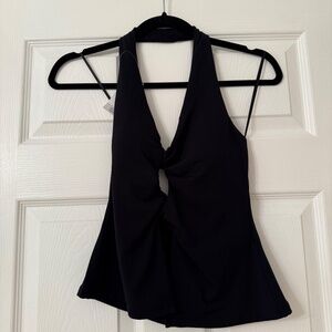 Abercrombie & Fitch Black Bra-Free Twist Halter Cutout Top