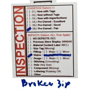 CONDITION: Pre-Owned – Fair. This jacket is missing it's zipper and it has some stains on the back. Please see all photos & feel free to ask us any questions!
