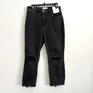Abercrombie & Fitch Curve Love Ultra High Rise Ankle Straight Jeans, women’s size 30/10s! Black, distressed at the knees and ankles, zip and button closure.