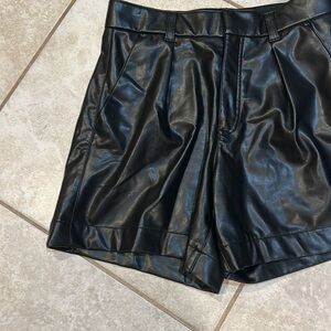 Gently worn Abercrombie and Fitch Black Faux Leather High Waisted Shorts women’s size Medium. Polyurethane, faux leather material, black, high rise waist, zipper fly, hip pockets, pleats at front waist, longer midi length- hits mid thigh, tailored. Offers accepted!