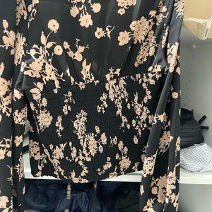 Abercrombie & Fitch Black Floral Crop Smocked Top