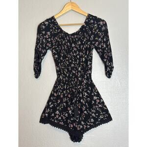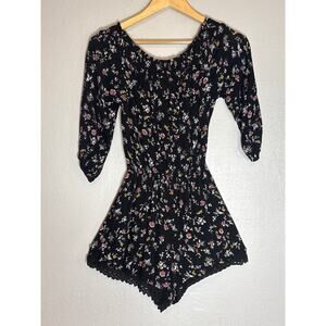 Abercrombie & Fitch Black Floral Shorts Romper Women Small Off Shoulder Moody