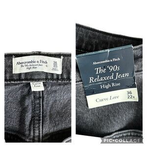 Abercrombie & Fitch Black Grey Curve Love High Rise 90s Relaxed Jeans 36/22R NEW