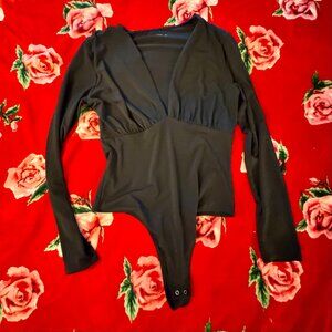 Abercrombie & Fitch Black Long Sleeve Deep V-Neck Bodysuit Soft A&F Collection