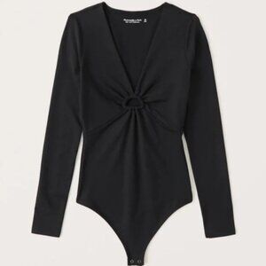 Abercrombie & Fitch Black Long-Sleeve Seamless Fabric Keyhole Bodysuit