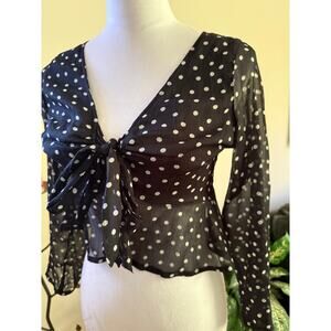 Abercrombie & Fitch Black Polka Dot Tie Blouse