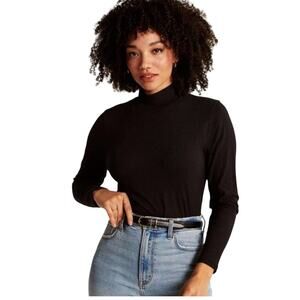 Abercrombie & Fitch Black Ribbed Mock Neck Knit Pullover Top Size M